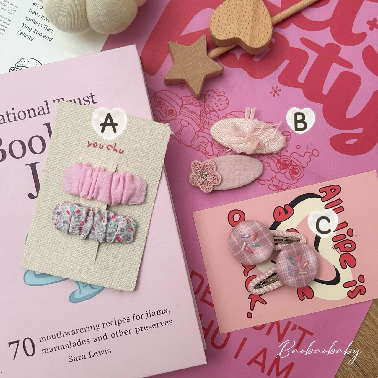 🌸 A款(2入):粉嫩+碎花布皺褶設計,輕柔又立體,隨便一夾都可愛。