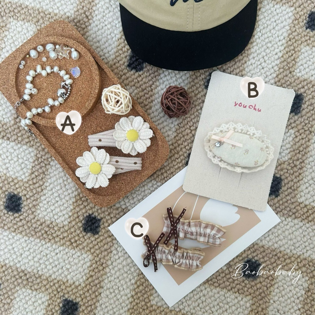A款(2入):立體雛菊設計,奶油編織質感,像野餐墊上的小陽光。
