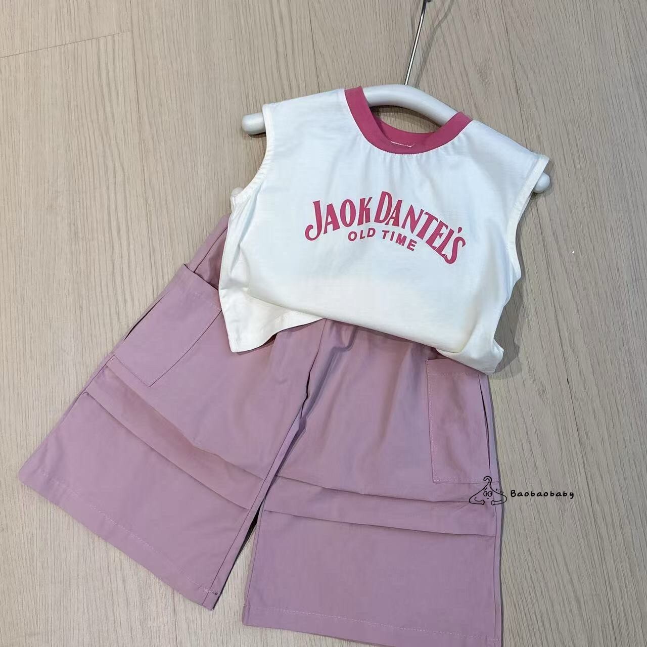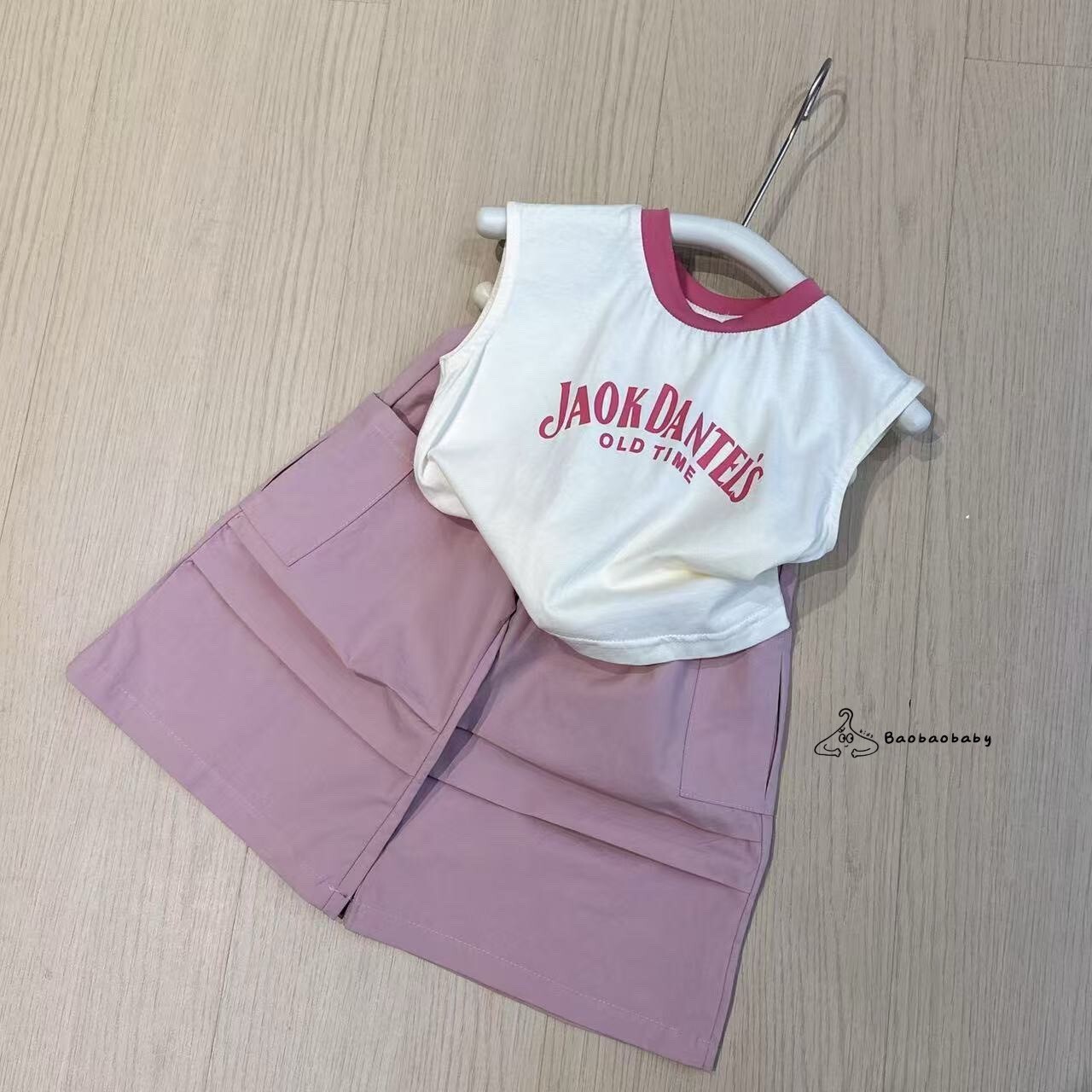 奶白底搭配莓紅滾邊,復古英文字體印刷,走一個 mini 搖滾路線。